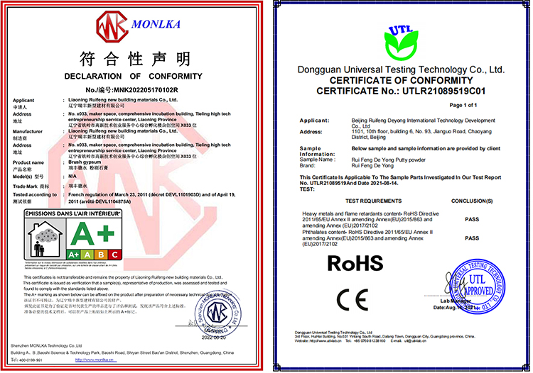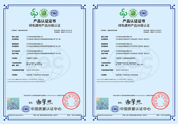 瑞豐企業(yè)以科研實力雄厚、設備工藝先進、管理體系完善,市場競爭力強等多方面優(yōu)勢在行業(yè)內迅速重出重圍,在建筑行業(yè)細分領域的技術層面和市場贏得領先地位,瑞豐德永產品先后獲得中國十環(huán)認證列入政府采購清單,綠色建材產品認證,法國A+及歐盟ROHS國際雙認證。